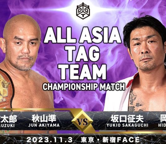 Asosan & Naoki Sakurajima defeated Tajiri & Jet Wee via Vertical Drop Brainbuster on...